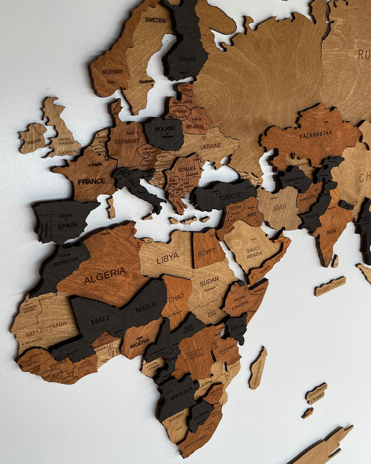 ESPRESSO ist eine außergewöhnliche Wanddekoration, die Ihrem Interieur Eleganz und einzigartigen Charme verleiht. Diese 3D-Weltkarte wurde sorgfältig aus hochwertigem Holz gefertigt, wodurch sie ein einzigartiges, natürliches Aussehen erhält. Die Farbe ESPRESSO verleiht ihr Tiefe und Stil. Diese Karte verschönert nicht nur Ihre Wände, sondern ist auch eine Quelle der Inspiration für Reisen und die Entdeckung neuer Orte. Die 3D-Weltkarte aus Holz |ESPRESSO besticht durch ihr einzigartiges Design und ihre sorgfältige Verarbeitung. Verleihen Sie Ihrem Interieur eine einzigartige Note, die Ihre Leidenschaft für das Erkunden der Welt unterstreicht.