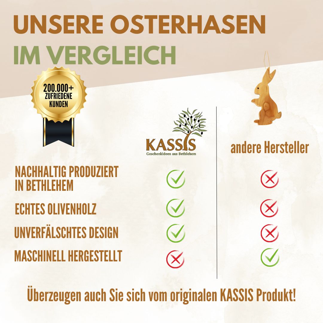 🌿 NACHHALTIGES OLIVENHOLZ: Unsere einzigartigen Hasen werden aus nachhaltig geerntetem Olivenholz hergestellt, wodurch wir aktiv zum Umweltschutz beitragen.