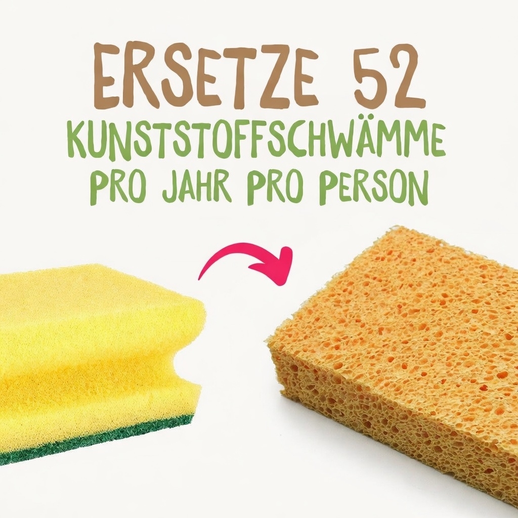 Nachhaltigkeit ohne Kompromisse: Herkömmliche Schwämme bestehen meist aus Kunststoff und geben bei jedem Gebrauch Mikroplastik ins Abwasser ab. Unsere Schwämme bestehen zu 100 % aus natürlicher Zellulose (Holzfaser). Wenn sie nach intensiver Nutzung ausgedient haben, können sie einfach im Kompost entsorgt werden, wo sie sich rückstandslos zersetzen.