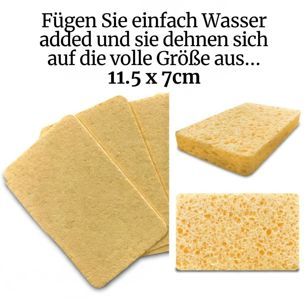 Produkt 1: Kompostierbare Reinigungsschwämme (5er-Pack) Diese Schwämme sind wahre Platzwunder. Sie werden in gepresster, kompakter Form geliefert und entfalten erst bei Kontakt mit Wasser ihre volle Größe.