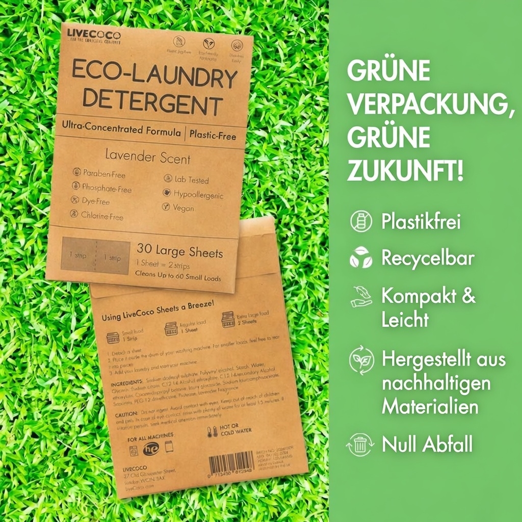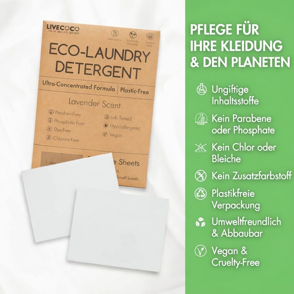 Entdecken Sie die Zukunft des Wäschewaschens. Diese Waschmittelblätter sind die perfekte Antwort auf sperrige Plastikkanister und umweltschädliches Pulver. Sie sind federleicht, einfach zu transportieren und hinterlassen garantiert keinen Müll.
